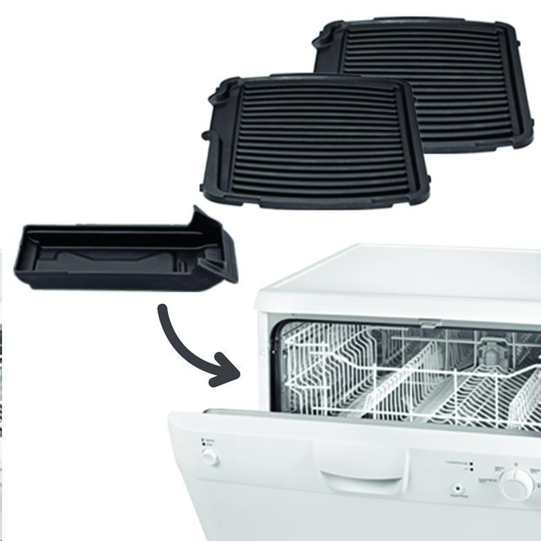 Upratovanie grilu je veľmi jednoduché vďaka oddeliteľným grilovacím plochám, ktoré je možné umývať v umývačke riadu, a tiež unikátnemu tácku na odtok šťavy. Nastavte si presnú teplotu pre konkrétne pripravované potraviny a vychutnajte si dokonalú chuť!