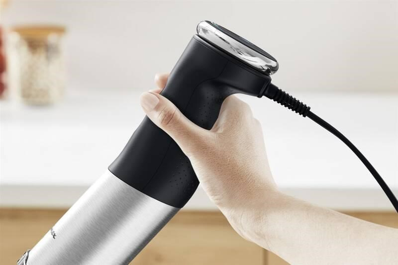 Zariadenie je vybavené mäkkou ergonomickou rukoväťou a odolným kovovým plášťom s precízne navrhnutou ochranou proti rozstreku. To všetko uľahčuje a spríjemňuje používanie tyčového mixéra Tefal HB67G830 Quickchef+ 5v1 Black.