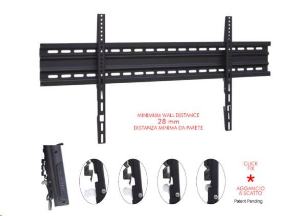 Veľmi kvalitný fixný držiak na stredne veľké a veľké LCD plazmové LED televízory. Držiak je veľmi kvalitný a uspokojí aj najs náročnejších zákazníkov. Technické údaje: nosnosť 60kg vzdialenosť od steny len 28mm vhodný na TV, monitory a displaye 40" - 85" VESA štandardy 100x100 až 800x400 vysoká kvalita snadná montáž farba čierna záruka 5 rokov Držiak podporuje VESA štandardy: VESA 100x100 VESA 200x100 a 100x200 VESA 200x200 VESA 300x100 a 100x300 VESA 300x200 a 200x300 VESA 300x300 VESA 400x200 a 200x400 VESA 400x300 a 300x400 VESA 400x400 VESA 500x300 VESA 600x400 VESA 800x400 Držiak OMB Slim 800 je ideálny na zavestenie všetkých televízorov, monitorov a signage display s hmotnosťou do 60kg a VESA štandardy v rozmedzí 100x100 až 800x400. Uhol nie je podstatný.