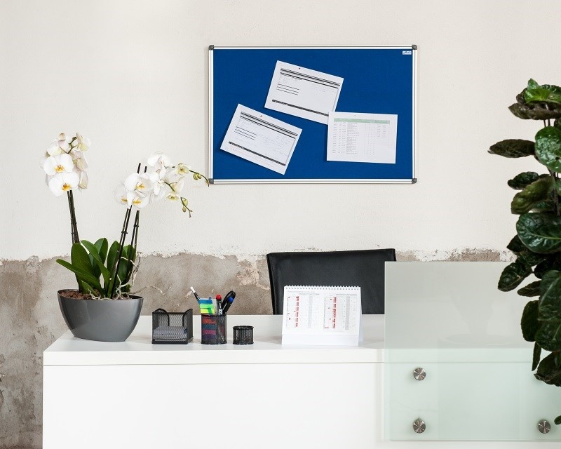 Textilná nástenka v modrej alebo sivej farbe s hliníkovým rámom je vhodná do prezentačných priestorov, kancelárií, firiem a úradov. Pod textilným povrchom sa nachádza doska z drevených vlákien, ktorá umožňuje dlhodobé používanie...