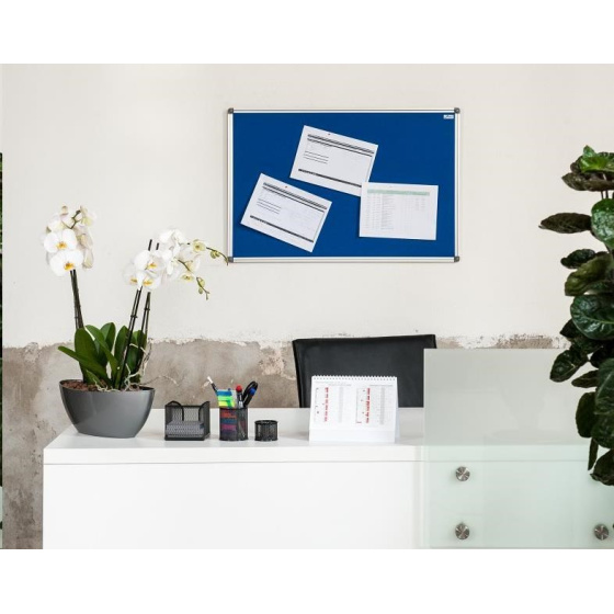 Textilná nástenka v modrej alebo sivej farbe s hliníkovým rámom je vhodná do prezentačných priestorov, kancelárií, firiem a úradov. Pod textilným povrchom sa nachádza doska z drevených vlákien, ktorá umožňuje dlhodobé používanie...