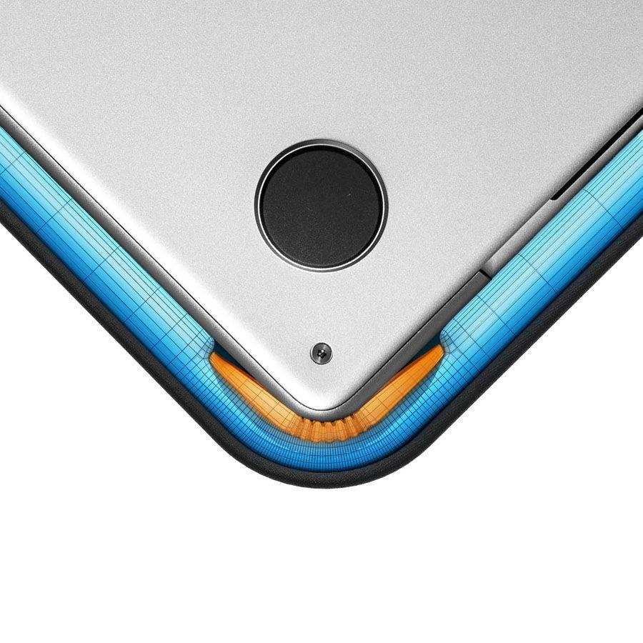 Váš notebook bude na cestách vždy v bezpečí vďaka patentovanému systému CornerArmor, zosilnenou ochranou hrán a rohov a vnútornou výstužou, ktorá absorbuje energiu pri nárazoch. Ide o úplne unikátnu technológiu, vďaka ktorej púzdro úspešne prešlo extrémnou vojenskou skúškou Military-Standard-Drop-Test. A tým ho žiadne iné neprekoná. Silná plyšová podšívka v hlavnej kapsi navyše chráni šasi notebooku pred poškriabaním.