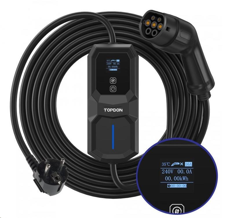 TOPDON PulseQ AC Prenosný je užitočné riešenie na nabíjanie vášho elektromobilu na cestách! S TOPDON PulseQ AC Prenosný môžete nabíjať svoj elektromobil kedykoľvek a kdekoľvek.