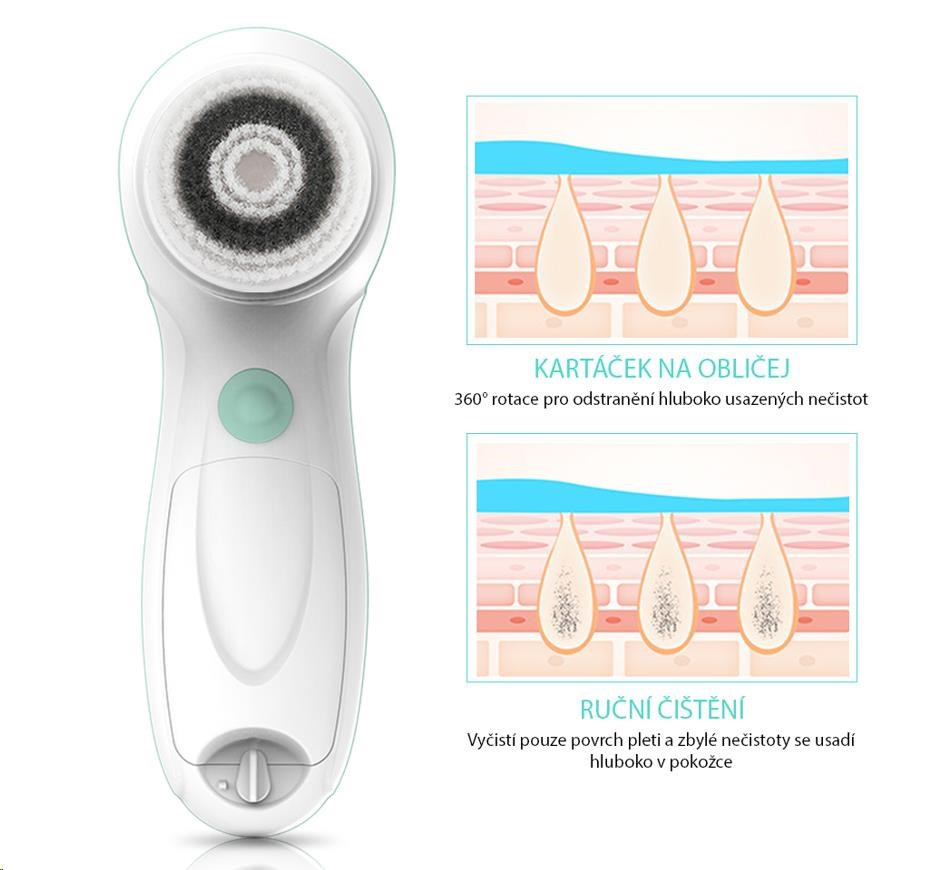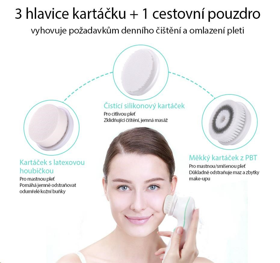 • Silikónová kefka pre citlivú pokožku, masíruje pleť a zlepšuje krvný obeh