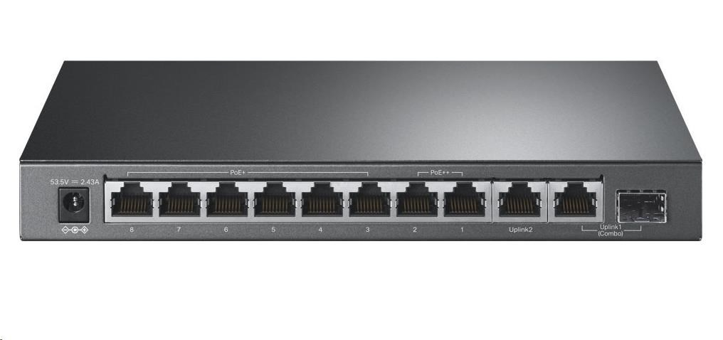 | Rozhranie | • 9× 10/100/1000Mbps RJ45 portov, 1× 1000Mbps Combo SFP/RJ45 port • AUTOMATICKÉ dohadovanie • AUTO MDI/MDIX |