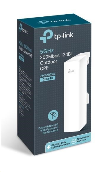 Vonkajšia jednotka TP-Link CPE510 s parametrami 5 GHz 300 Mbit/s 13 dBi bola navrhnutá pre cenovo dostupné riešenia vonkajších bezdrôtových sietí. Umožňuje centralizované riadenie a je tak flexibilným a ideálnym riešením pre aplikácie typu point-to-point, point-to-multipoint a vonkajšie pokrytie bezdrôtovou sieťou. Vďaka výkonu na profesionálnej úrovni a používateľsky prívetivému dizajnu je jednotka CPE510 perfektnou voľbou pre firemné aj domáce použitie.