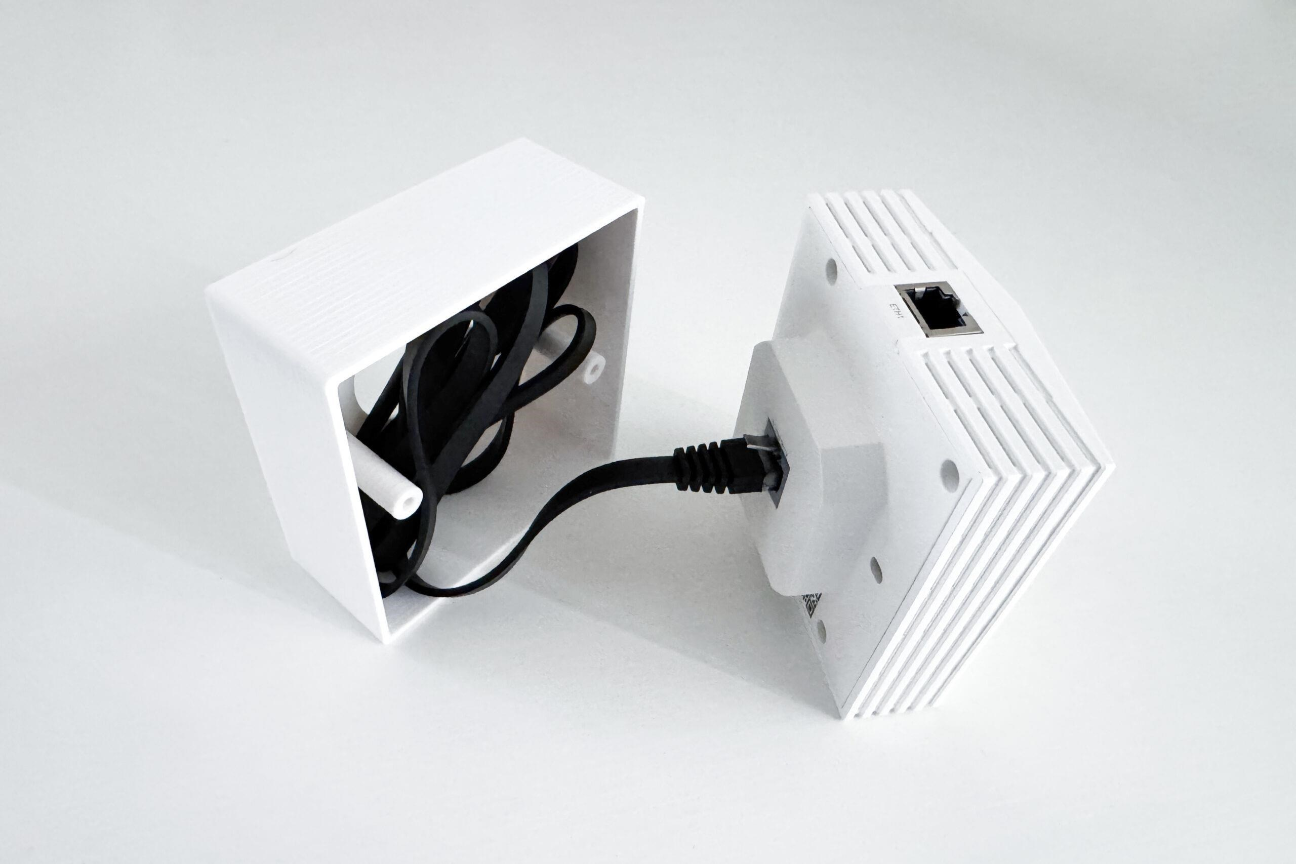 Plastový montážny box je určený na zakrytie káblov a upevnenie nástenného WiFi EAP a vypínačov Tapo EAP115-Wall, EAP230-Wall, EAP650-Wall, Tapo S210, Tapo S220 od TP-Linku na stenu pomocou dvoch skrutiek. Držiak je vyrobený z materiálu PETG na 3D tlačiarni, je bielej farby.