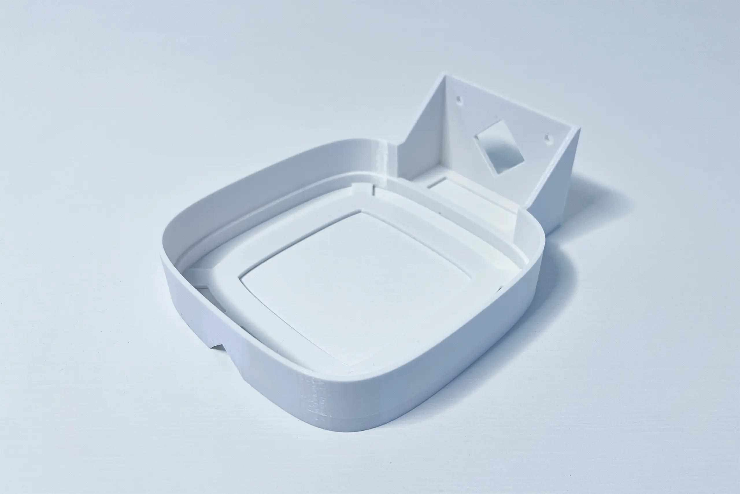 plastový držiak na stenu pre TP-Link DHX510, HX520 na stenu a to pomocou dvoch skrutiek. Držiak je vyrobený z PETG materiálu na 3D tlačiarni a má bielu farbu.