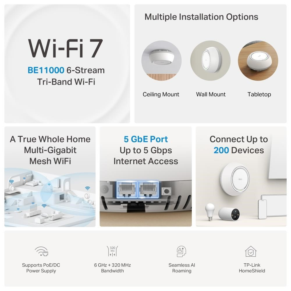 TP-Link Deco BE65-PoE(3-pack) WiFi7 Mesh (BE9300,2,4GHz/5GHz/6GHz,2x5GbELAN/WAN,1xPoE)