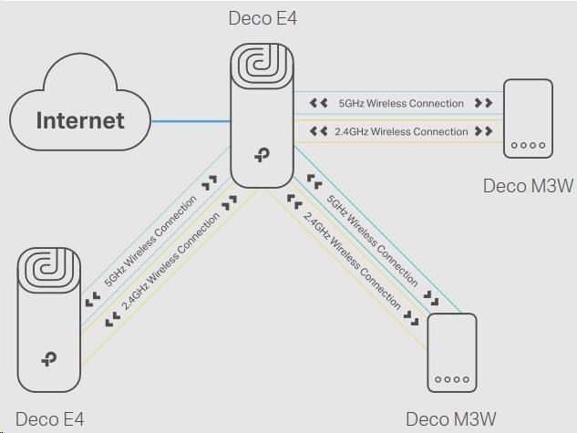 • Dvojbalenie Deco E4 poskytuje Wi-Fi pokrytie na ploche až 260 m2 (= 2800 štvorcových stôp, verzia EU). A ak to nestačí, kedykoľvek k sieti jednoducho pridajte ďalšiu jednotku Deco, aby ste zvýšili pokrytie.