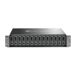 Rackový chassis Omada MC1400 se 14 sloty je speciálně navrženo pro umístění 14 mediálních konvertorů Omada, což umožňuje centrální napájení a šetří místo a kabely. Pro nepřetržitý provoz ve vláknové komunikaci je chassis vybaveno volitelným redundantním napájecím zdrojem a funkcí Hot-Swapping, díky které lze instalovat/odstraňovat konvertory bez vypnutí chassis. K stabilizaci výkonu a prodloužení životnosti jsou uvnitř instalovány dva chladiče. Spolu s mediálními konvertory Omada řady MC Gigabit / Fast Ethernet je MC1400 ideálním řešením pro vaši síť mediální konverze. * Pro tp-link mediální konvertory podporuje MC1400 verze MCXXX ver:2.0 a vyšší, ne verze 1.0. ** MCRP100 lze použít jako modul napájení pro MC1400. Každý MCRP100 je vybaven chladičem.