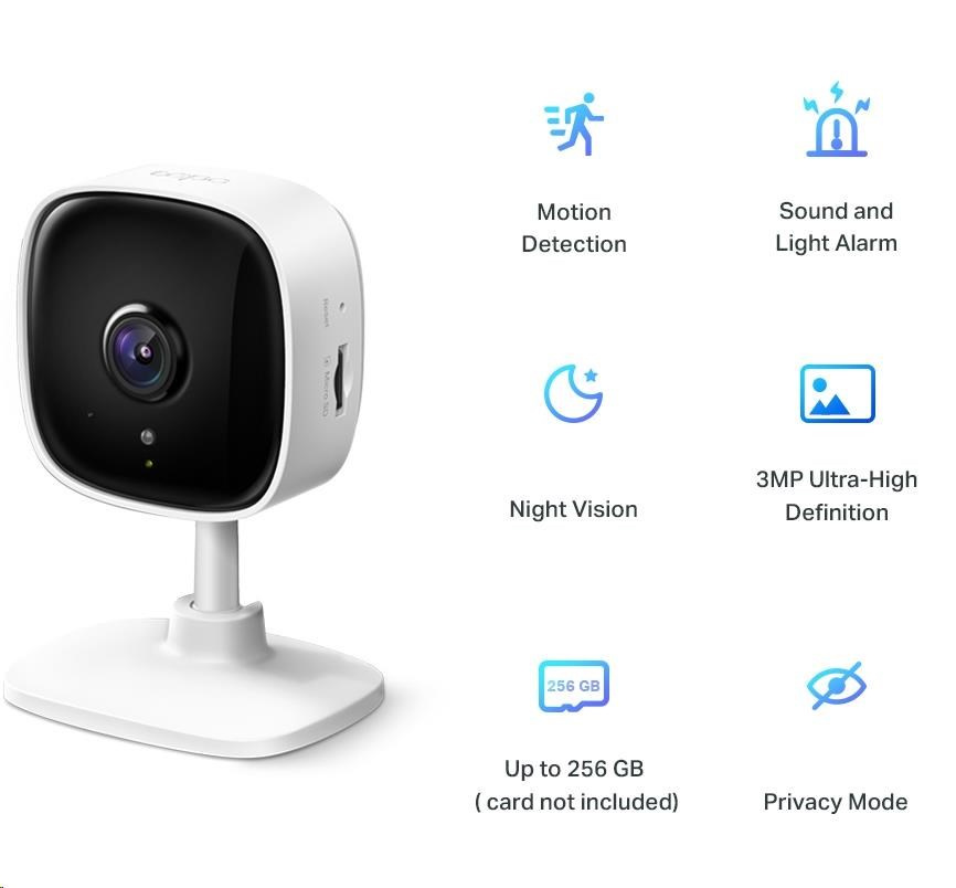 | Package Contents | Tapo C110 DC Napájací adaptér Rýchly sprievodca Montážne skrutky Montážny šablón |