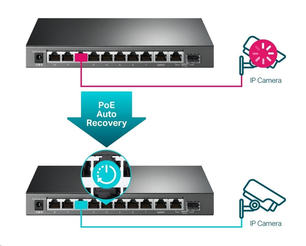TL-SG1210MPE je plne kompatibilný so zariadeniami PoE, ako sú IP kamery, body prístupu a IP telefony. Môže byť tiež použitý na káblové pripojenie zariadení bez PoE, ako sú počítače, tlačiarne a IPTV.