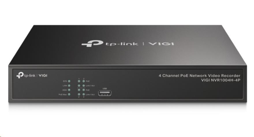 TP-Link VIGI NVR1004H-4P, videorekordér, 4 channels, 4xPoE, 1xSATA, 1x100Mb/s LAN, 2xUSB2.0, 1xHDMI,1xVGA