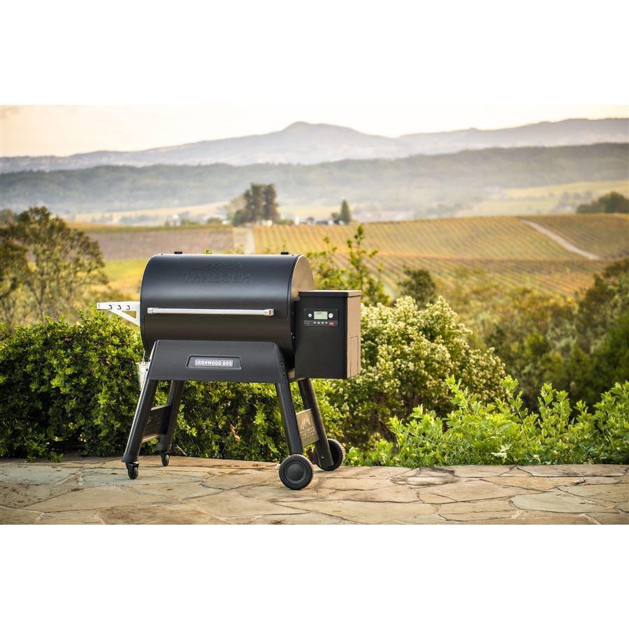 Vlastnosti grilu Traeger zahŕňajú všestranný teplotný rozsah od 165 °F do 500 °F, ideálny na uzení, pečenie, grilovanie aj BBQ, s rýchlym zahrievaním a konštantnou reguláciou teploty vďaka napätiu 120 V AC a výkonom 95 W. Vďaka WiFIRE® pripojeniu a integrovanému senzoru peliet môžete sledovať varenie a hladinu peľ odkiaľkoľvek pomocou aplikácie Traeger. Ponúka veľkú varnú plochu 1651 cm2 na dvoch radoch porcelánom potiahnutých oceľových roštov a je navrhnutý s izolovanou konštrukciou s dvojitou stenou na zníženie kolísania teploty. Súčasťou je aj sonda na mäso Traeger pre jednoduchú kontrolu vnútorných teplôt, funkcia Super Smoke na vylepšenie chuti drevného uzení a pohodlné čistenie zásobníka na rýchlu výmenu peliet. Gril sa pripája k elektrickej siete pomocou priloženého 6 ft D2 NEMA napájacieho kábla.