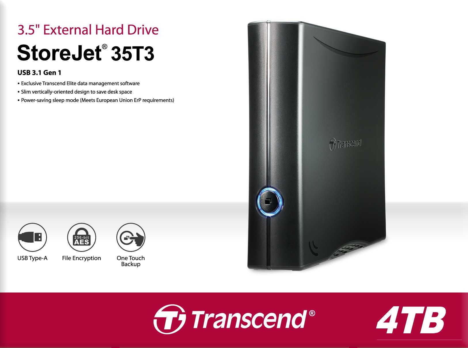 Popis Externý pevný disk TRANSCEND 3,5" USB 3.1 StoreJet 35T3, 4 TB, čierna, Turbo