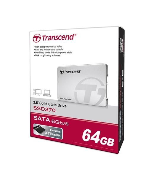 Popis TRANSCEND SSD 370S 64GB, SATA III 6Gb/s, MLC (Premium), hliníkové puzdro