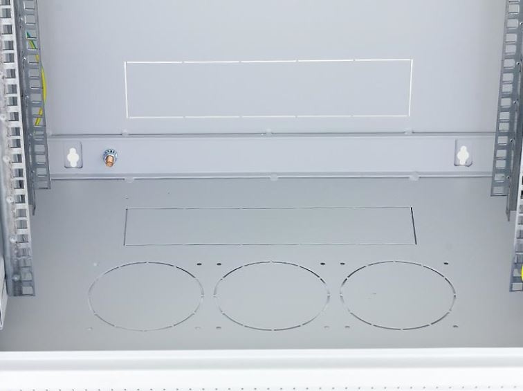 Horná, spodná a zadná časť skrine sú vybavené káblovými vstupmi zakrytými odlamovacími zátkami. Súčasťou balenia je plastový rám a tesniaca krytka kefy na utesnenie vstupného otvoru proti prachu.