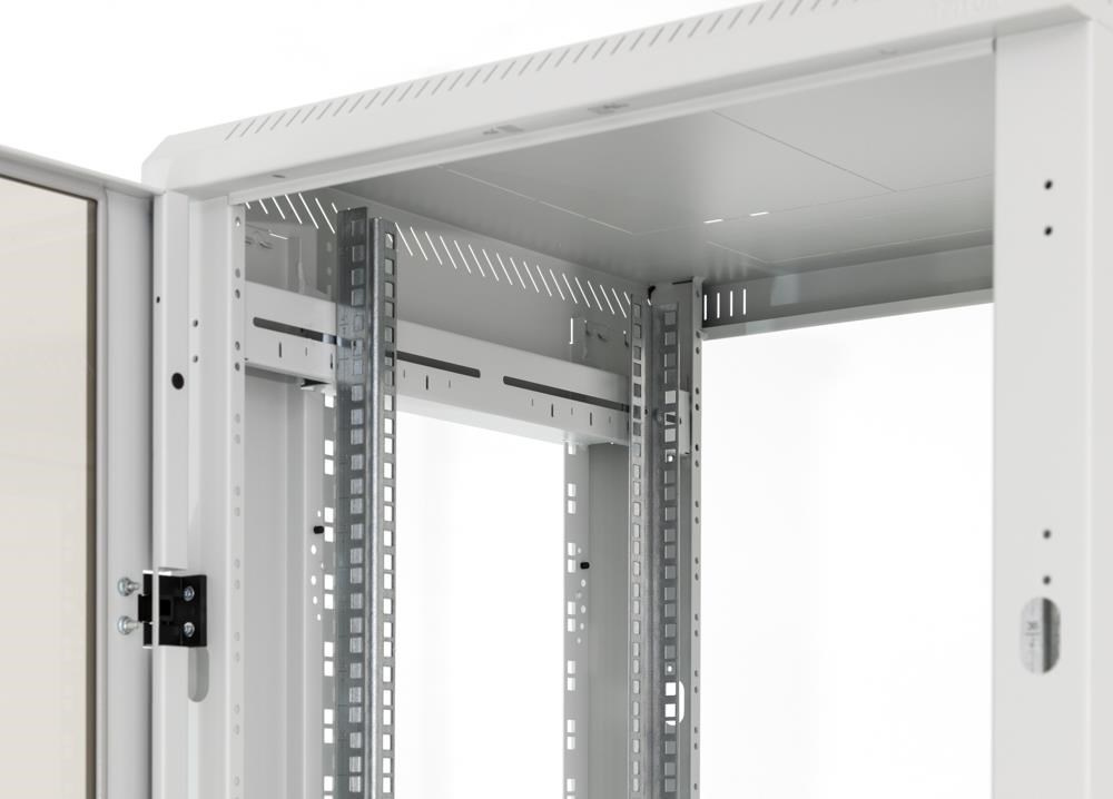 Široké stojiny rámu sú určené pre dodatočnú montáž príslušenstva, napríklad rozvodných panelov alebo vertikálnych vyväzovacích panelov, ktoré tak nezaberajú 19“ priestor v rozvádzači. Vďaka dôvtipnému uchyteniu nebránia rozvodové paneli v použití vysúvacích serverov ani pri rozvádzačoch širokých 600 mm.