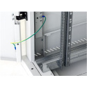 (platí pre šírku stojana 800 mm). Systém umožňuje inštaláciu posuvných vertikálnych koľajníc v rozpätiach 19", 21" a 23", presne podľa požiadaviek inštalovaného zariadenia.