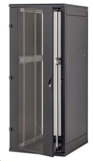 (platí pre šírku stojana 800 mm). Systém umožňuje inštaláciu posuvných vertikálnych koľajníc v rozpätiach 19", 21" a 23", presne podľa požiadaviek inštalovaného zariadenia.