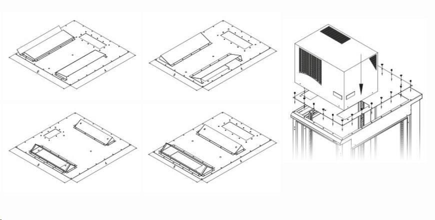 Aby bolo možné naplno využiť potenciál klimatizačných jednotiek nasmerovaním chladiaceho vzduchu presne podľa potrieb inštalovaných technológií, dodávame inštalačné redukcie na ich montáž na stojanové skrine radu RDE a RIE. Ide o kovový panel, ktorý je priskrutkovaný k veľkému otvoru v hornej časti skrine a na ktorom je umiestnená klimatizácia. Redukcie sú symetrické, takže zmena orientácie prúdenia vzduchu je možná pootočením redukcie. Rôzne veľkosti redukcií a orientáciu otvorov na chladiaci vzduch nájdete v tabuľke na tejto strane. Pre ľahký prístup k ovládaciemu panelu termostatu ho možno namontovať v 2 polohách jednoduchým zasunutím do konektora (pozri. inštalačná príručka).