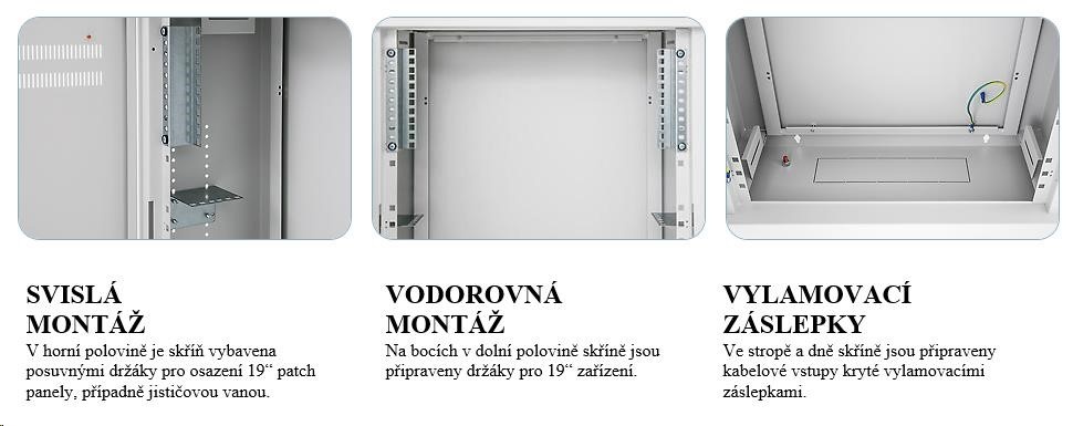Hybridný nástenný stojan TRITON SHA, 4U vertikálne, 2U horizontálne, nosnosť 30 kg