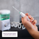 Používanie AquaFloss Station S600 je omnoho jednoduchšie a šetrnejšie, než čistenie pomocou zubnej nite a medzizubných kefiek, ktoré navyše musíte pravidelne dokupovať. Stačí naplniť 600 ml nádržku sprchy vodou a zapnúť čistenie. Pomocou StreamTrue® technológie prúd vody a vzduchu prenikne aj do tých najužších priestorov a účinne odstráni zubný povlak, baktérie aj zbytky jedla. Ovládanie sprchy je jednoduché, intenzitu tlaku nastavíte na stanici a čistenie zapnete / vypnete primo na rukoväti.