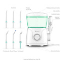 U AquaFloss Station S600 máte na výber z desiatich úrovní tlaku vody, v rozmedzí 30–125 PSI, čistenie zubov si tak môžete plne prispôsobiť. Požadovaný tlak si nastavíte pomocou kolieska na stanici. Súčasťou sprchy je 6 špeciálnych trysiek (3× Standard, 1× Orthodontic, 1× Periodontal, 1× Dental Plaque), navrhnuté pre rôzne potreby: