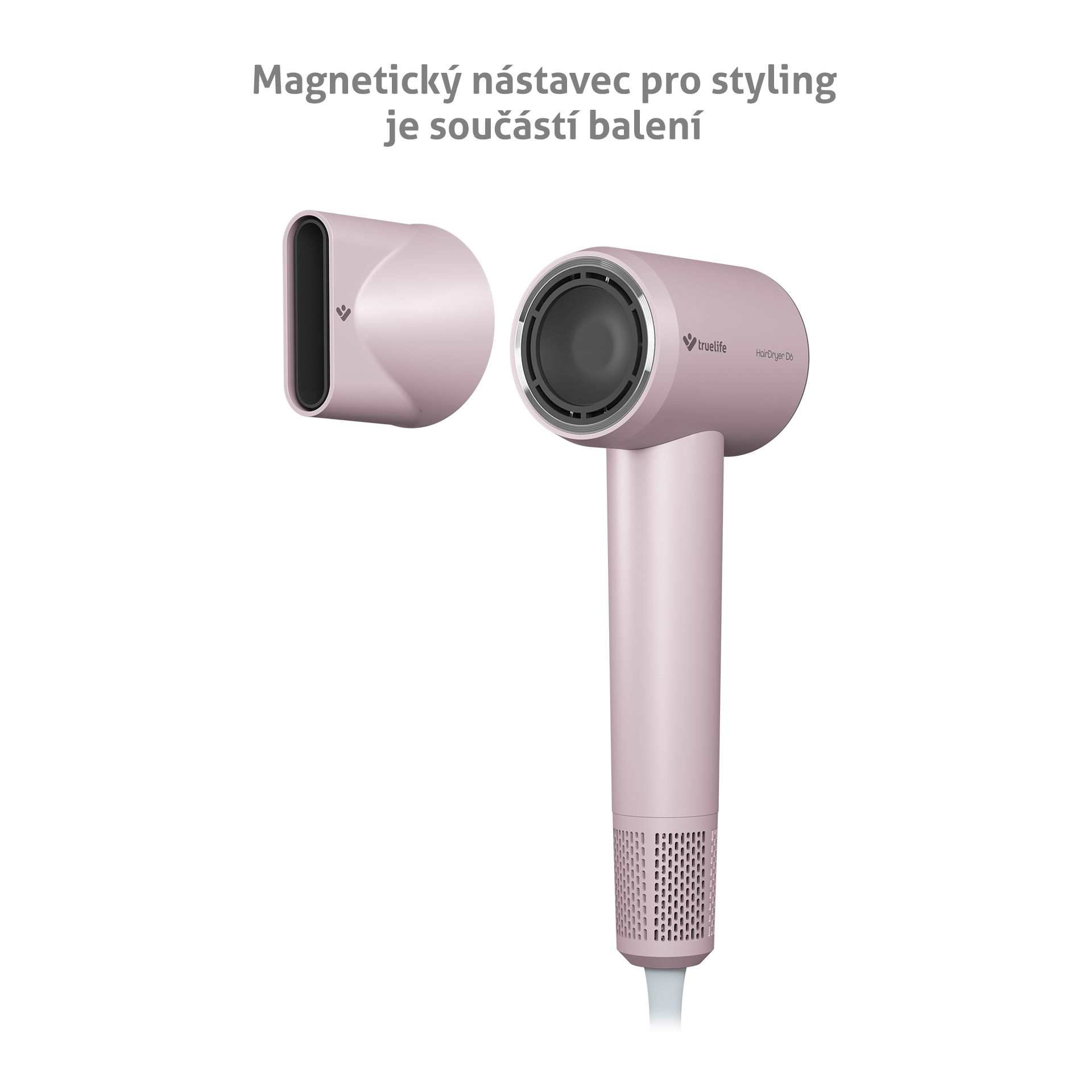 Doprajte svojim vlasom to najlepšie – fén s ionizátorom TrueLife HairDryer D6 im poskytne profesionálnu starostlivosť v pohodlí vášho domova. Jeho superrýchly motor s technológiou TrueLife UltraFlow® sa pýši výkonom až 110 000 otáčok za minútu. Ionizátor s technológiou TrueLife UltraIonic® generuje približne 200 miliónov záporných iónov, ktoré prispievajú k hladším a zdravším vlasom, pretože sušenie je šetrnejšie a rýchlejšie. Aktuálne zvolenú teplotu signalizuje farebný LED krúžok,pričom si môžete vybrať z 3 úrovní alebo režimov striedania studeného a horúceho vzduchu, ako aj z 2 rýchlostí sušenia. Dokonalý styling podporí aj magnetický koncentračný nadstavec, ktorý je súčasťou balenia. Už žiadne presušené a poškodené vlasy vďaka technológii TrueLife ConstantHeat®, ktorá počas sušenia udržuje stálu teplotu. Fén má veľmi tichý chod, bezpečnosť zaisťuje ochrana proti prehriatiu a údržby sa nemusíte obávať, pretože odnímateľný prachový filter sa dá ľahko odskrutkovať a vyčistiť.