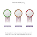 Zrkadlová plocha je lemovaná farebným LED krúžkom, ktorý na prvý pohľad indikuje nastavenú teplotu. Zelená farba označuje studený vzduch, oranžová teplý vzduch, červená teplý vzduch a žltá aktivovanie striedania teplého a studeného vzduchu.