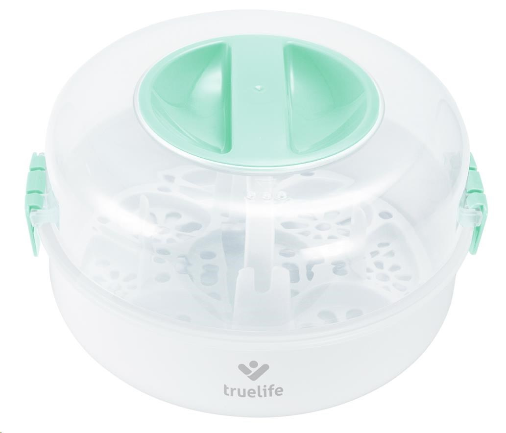 Ochrana imunitného systému vášho dieťaťa pre vás nemusí znamenať neustále vyvarenanie fľaštičiek a cumlíkov. So sterilizátorom do mikrovlnnej rúry TrueLife Invio MS5 sterilizujete detské fľaštičky, hryzátka a ďalšie predmety behom dvoch minút. Na to potrebujete len obyčajnú vodu a mikrovlnnú rúru. Sterilizátor využíva nemocničnú metódu parnej sterilizácie, ktorá je rýchla, účinná a bez chemických látok. Ničí tak 99,9 % baktérií a mikróbov, ktoré sa nachádzajú na detských predmetoch, bez poškodenia ich povrchu. Sterilizátor je navrhnutý pre väčšinu mikrovlnných rúier na trhu a zvládne väčšinu typov dojčenských fliaš. Pojme až 5 fľaštičiek naraz a ľahko sa ovláda. Vďaka kompaktnej veľkosti s ním môžete bez problémov cestovať.