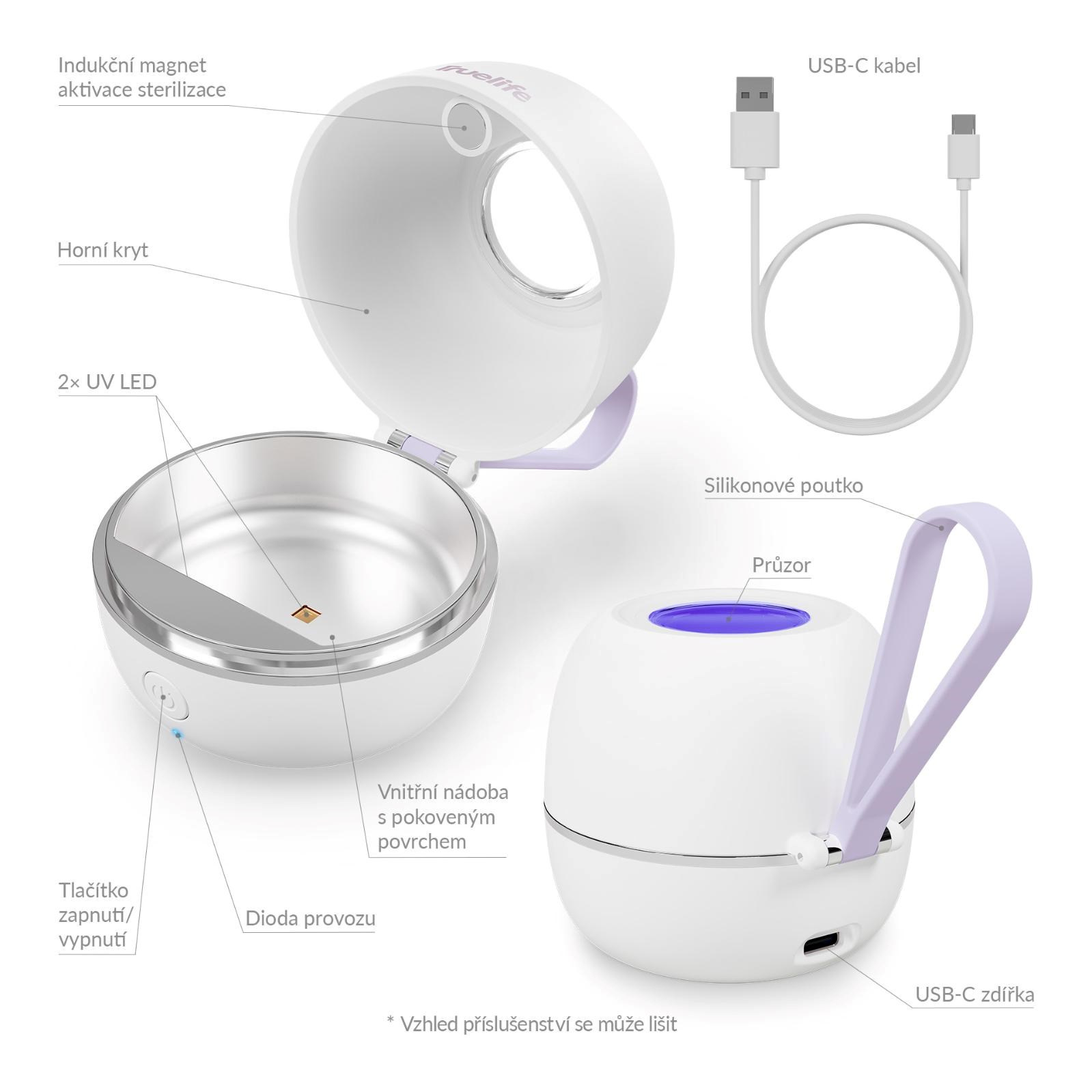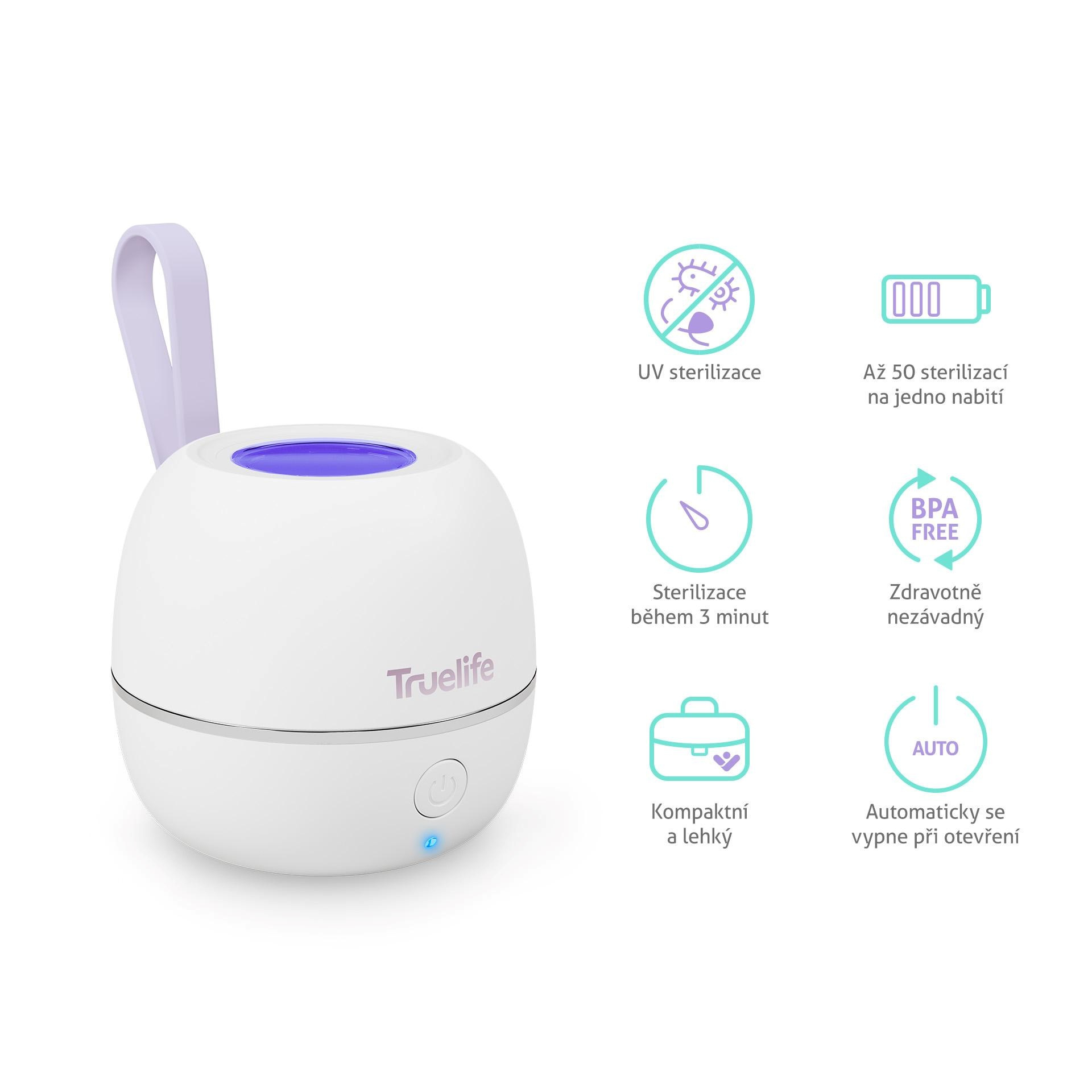 S príchodom bábätka sa každý deň naplní radosťou, ale zároveň aj okamihy, keď je potrebné konať rýchlo. Stačí chvíľa nepozornosti a cumlík skončí na zemi, zatiaľ čo vaše dieťa by ho chcelo mať späť čo najskôr. Práve v týchto chvíľach vám pomôže Truelife Pacifier UV Sterilizer S3, malý a spoľahlivý pomocník, ktorý sa vďaka svojej veľkosti zmestí do každej tašky, kabelky alebo vrecka kočíka. S praktickým siliconeovým poutkom ho môžete mať neustále pri sebe a byť si istí, že čistý cumlík je vždy po ruke. Sterilizácia prebieha úplne jednoducho a šetrne. Počas troch minút spoľahlivo odstráni cumlík až 99,9 % baktérií a vďaka bezpečnostnému systému veka sa spustí len vtedy, keď je správne uzavretý. Priehľadná okienko umožňuje sledovať proces bez unikania UV-C žiarenia, a telo z odolného plastu bez BPA zabezpečuje, že sterilizácia je úplne bezpečná pre deti. Vstavná batéria zvládne až 50 cyklov na jedno nabitie, takže sa na sterilizátor môžete spoľahnúť kedykoľvek a kdekoľvek, či už ste doma, na prechádzke alebo na cestách.