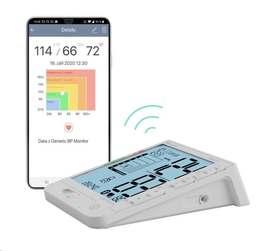 Tlakomer jednoducho spárujete s telefónom, kde môžete hodnoty meraní uchovávať a ďalej s nimi pracovať.