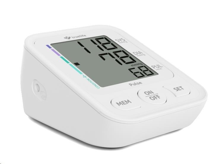 Tlakomer Truelife Pulse využíva oscilometrickú metódu merania tlaku a funguje na princípe nafúknutia manžety, ktorá zabezpečuje maximálnu presnosť nameraných hodnôt. Navyše jeho ovládanie je veľmi jednoduché a všetko podstatné zvládnete stlačením tlačidla START/STOP. Namerané hodnoty zobrazuje veľký a dobre čitateľný trojriadkový displej.