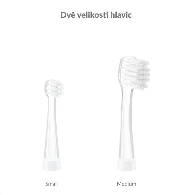 Súčasťou balenia sú 2 hlavice Small a 1 hlavica Medium, kefka tak môže používať viac detí. Iné typy hlavíc je možné dokúpiť.