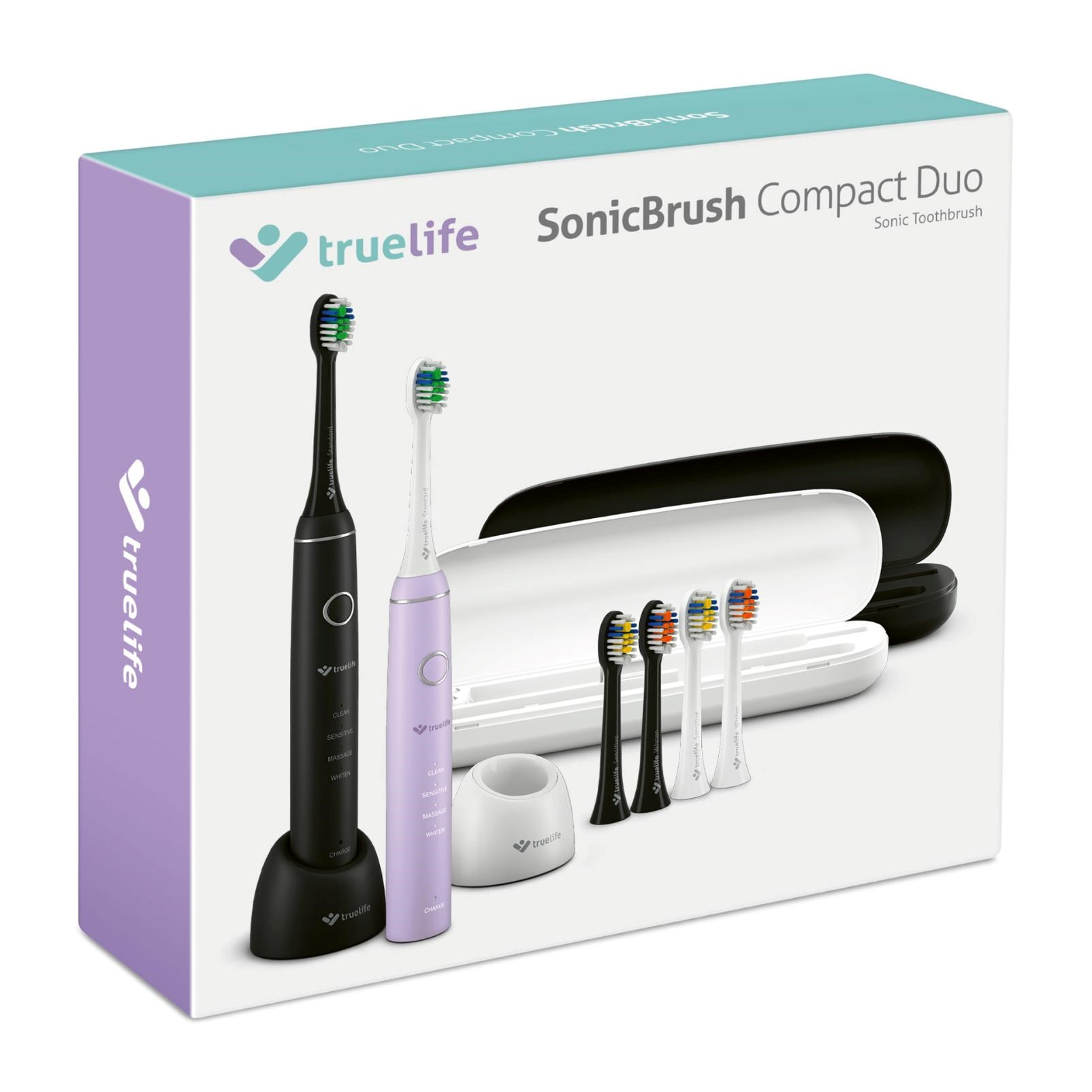 Chcete mať zdravé zuby a ďasná? Nechcete sa stresovať z každej návštevy zubára? Na kefku TrueLife SonicBrush Compact s modernou sonickou technológiou SonicTrue® sa môžete spoľahnúť vy aj váš partner. V sade SonicBrush Compact Duo totiž nájdete dva sonické kefky, 6 náhradných hlavíc (Sensitive, Standard, Whiten), 2 cestovné puzdrá a 2 dobíjacie základne. Doprajte si aj vy exkluzívnu zubnú starostlivosť, vďaka ktorej dosiahnete žiariaci úsmev a nedáte šancu škodlivým baktériám. Štetinky kefky kmitajú vysokou rýchlosťou až 70 000 pohybov za minútu a každým pohybom odstránite maximum zubného plaku. Môžete si vybrať zo 4 režimov čistenia. Batéria kefky vydrží až 30 dní.