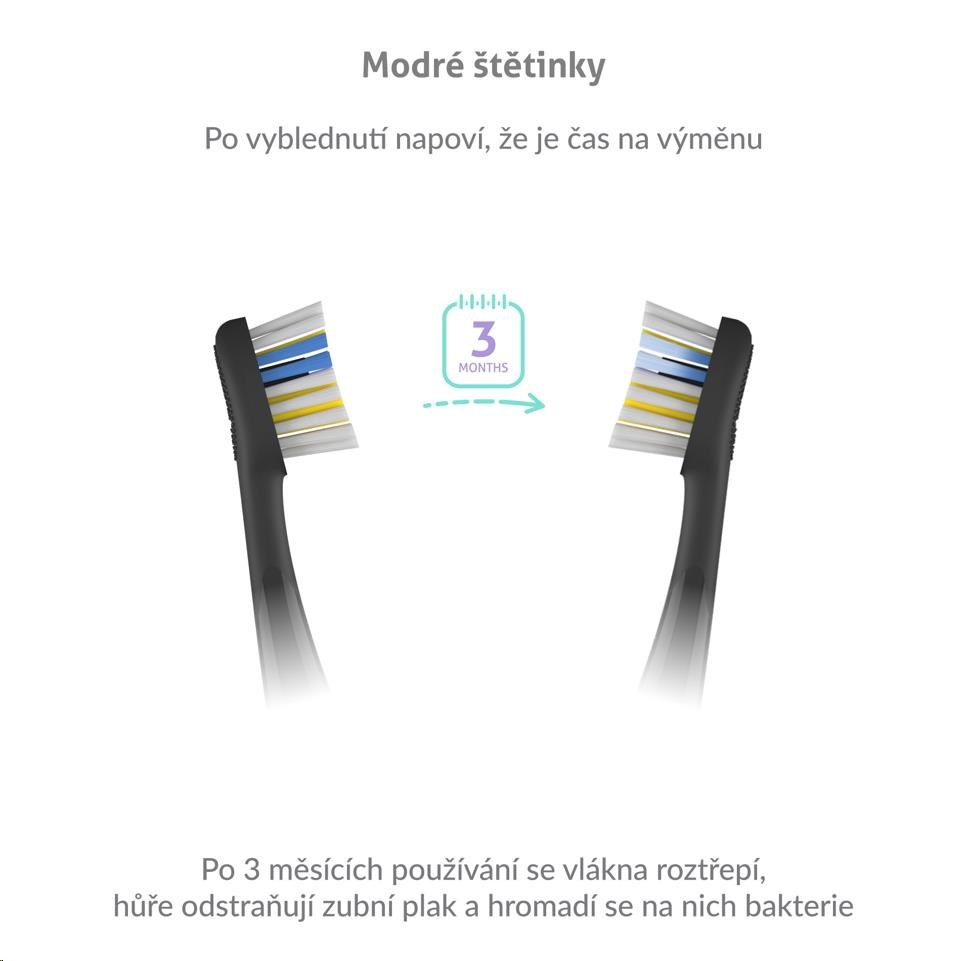 Hlavice vydržia až 3 mesiace používania, potom začnú lomiať sa, strácajú účinnosť a navyše sa na nich hromadia baktérie. Našťastie sú hlavice vybavené modrými štetinkami, ktoré po 3 mesiacoch vyblednú a vy tak viete, že je načase hlavice vymeniť.