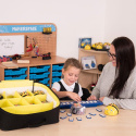 Pojme až 8 Bee-Botov alebo Blue-Botov, dokovaciu stanicu, Tactile čítačku a ďalšie drobnosti, ktoré budete potrebovať