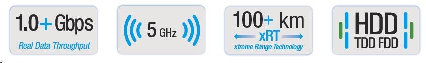 zároveň ide o najmodernejšiu chrbticovú technológiu v pásme 5 GHz. Vďaka pokročilej technológii HDD, eXtended Range a modulácii 256QAM komunikuje rýchlosťou až 1 Gb/s.