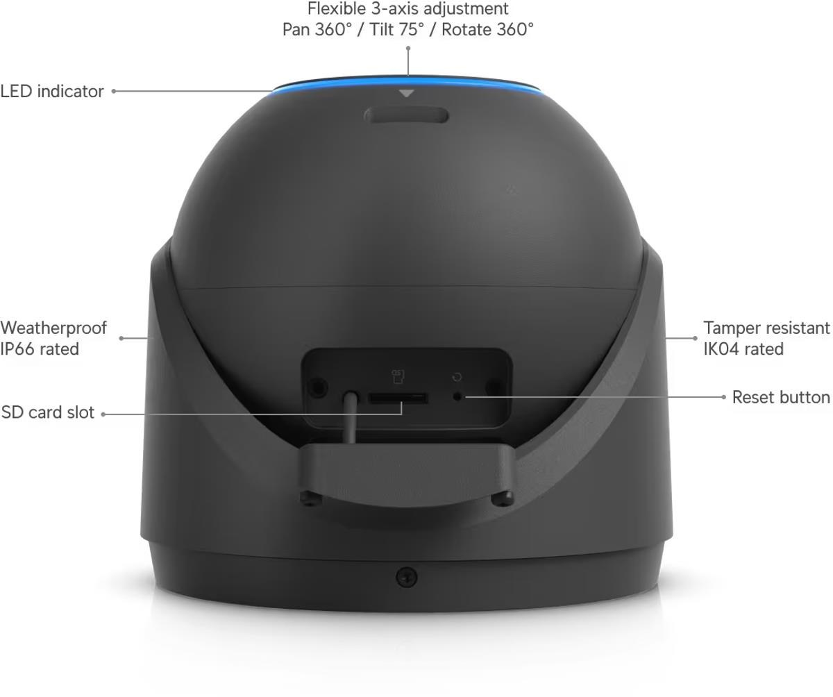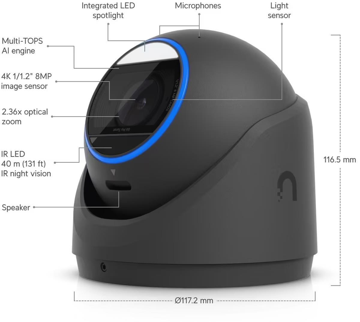 Popis UBNT G6 Pro Turret, UniFi 8MP IP kamera, černá