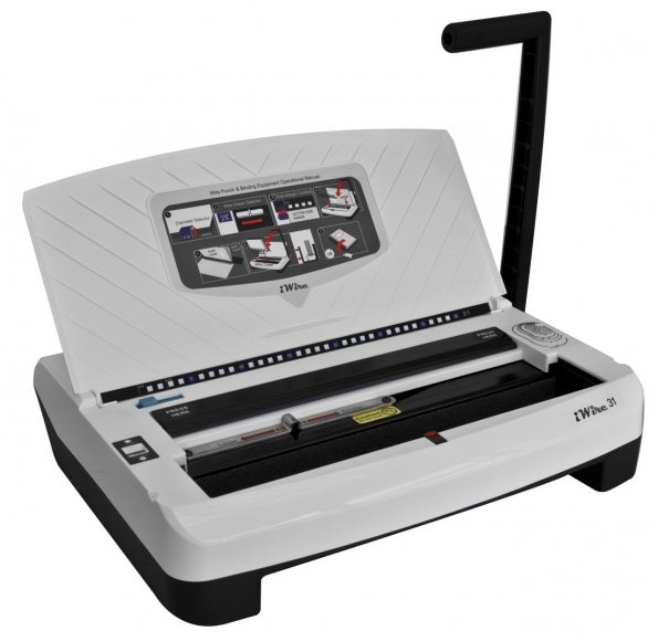 Krúžkový viazač na kovové chrbty s rozstupom dier 3/1" na viazanie do formátu A4 až do 130 listov 80g papiera. (Priemer krúžku 4,8 až 15,9 mm). Vďaka svojmu prepracovanému dizajnu je veľmi prívetivý pre používateľov. Ideálny do kancelárie, na menšie a stredné zaťaženie. Široká stopa zaisťuje dobrú stabilitu pri práci. Dierovanie 4 × 4 mm (34 dier/formát A4). Kapacita dierovania až 14 listov papiera súčasne. Z viazača sa dá vyrobiť aj menší počet kalendárov. Posuvný jazdec zabezpečuje veľmi presné a jemné nastavenie zvoleného priemeru väzby. Ergonomická páka na dierovanie a viazanie. Meradlo hrúbky zväzku na jednoduchý výber priemeru kovového chrbta. Integrovaná lišta na uchytenie kovového chrbta na jednoduché posúvanie perforovaných papierov. Moderný dizajn. Minimalistické rozmery umožňujú jednoduché skladovanie. Rozmery stroja šxvxh : 42,5 × 9 × 31 cm Hmotnosť 8 kg..