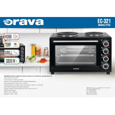 Orava Elektra-X28 elektrická trouba s dvouplotýnkou, 28 L, 2600 W, grilovací rošt, černá
