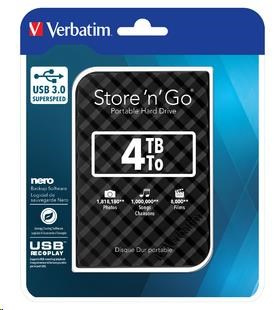 VERBATIM HDD 2.5" 4TB Store 'n' Go Portable Hard Drive USB 3.0, Black