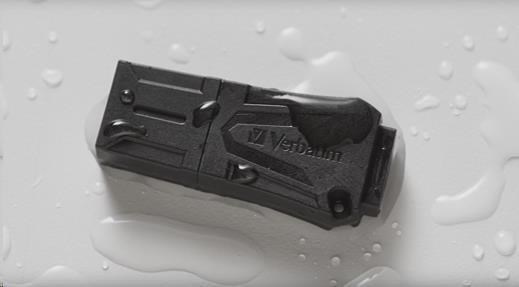 Zariadenie Verbatim ToughMAX USB 2.0 Drive je vyrobený zo zmesi KyronMAX™, termoplastického materiálu nahrádzajúceho kov, ktorý je schopný odolávať veľmi náročným podmienkam a používa sa v najnáročnejších aplikáciách od stíhačiek až po horské bicykle.