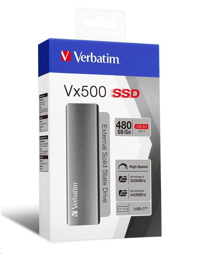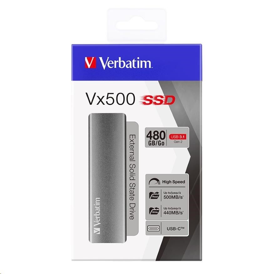Popis VERBATIM externý SSD disk 480GB Vx500 strieborný USB-C
