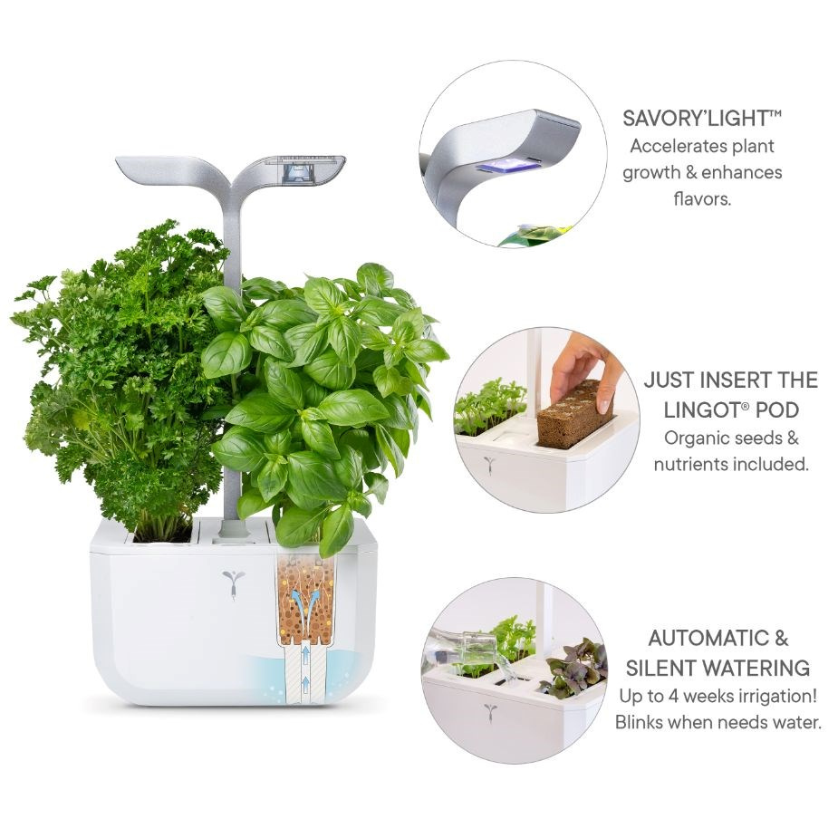 Exky Smart môže súčasne pojmúť dva Lingoty, čo vám umožňuje pestovať základné bylinky. Môžete si vybrať z viac než 80 typov semenových kapsúl, od čerstvých byliniek ako je bazalka a mäta po listovú zeleninu, exotické byliny a jedlé kvety. Táto flexibilita vám umožňuje vytvoriť mini vnútornú záhradu s rôznorodým spektrom chutí, ktoré obohatia vaše jedlo. So záhradkou sú dodávané 2 bylinkové Lingoty, aby ste mohli rovno začať!