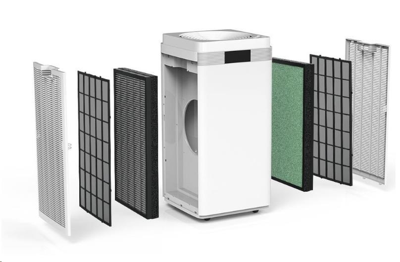 TM HEPA filter - Ide o True HEPA filter, ktorý zachytí 99,97% všetkých alergénov, vírusových častíc, peľu, plesní a plesní až do 0,3 mikrónu. účinne odstraňuje najmenšie častice prachu a tabakového dymu a zároveň antibakteriálny thiabendazol (organická antibakteriálna zlúčenina), ničí baktérie, spóry plesní a ďalšie a tým zabraňuje možnosti infekcie.