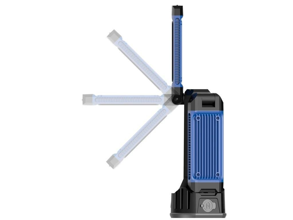 Viking B69571 je výkonné a všestranné pracovné svetlo pre náročné podmienky. Vďaka inovatívnej konštrukcii so tromi rozkladacími krídlami poskytuje svetlo bez mŕtvych uhlov, takže rovnomerne osvetlí celý pracovný priestor.
