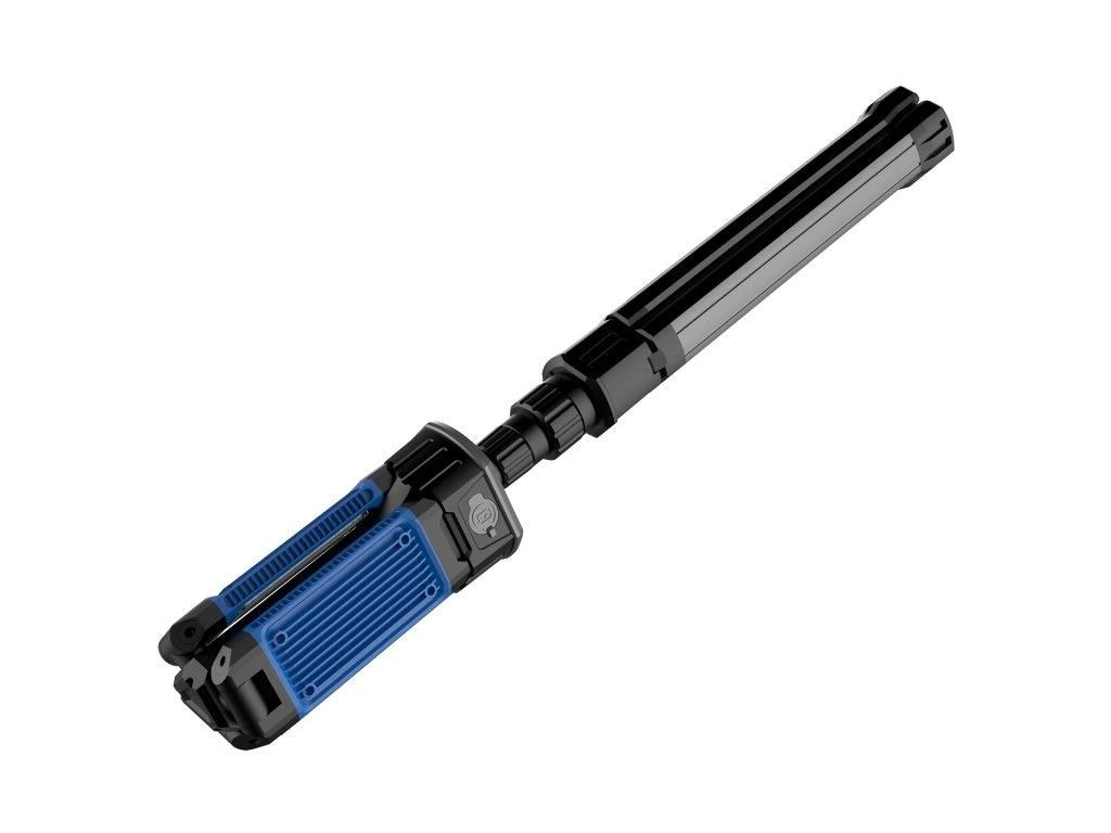 Jednoducho ho zložíte aj rozložíte, a pomocou vstavaného statívu ho možno nastaviť až do výšky 1,7 metra. V núdzovej situácii môže fungovať ako powerbanka s výstupom USB-A.